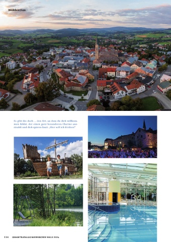 Waldkirchen Es gibt ihn doch … den Ort, an dem du dich willkom men fühlst, der einen ganz besonderen Charme aus strahlt und dich spüren lässt: „Hier will ich bleiben!“ 114 GESAMTKATALOG BAYERISCHER WALD 2026