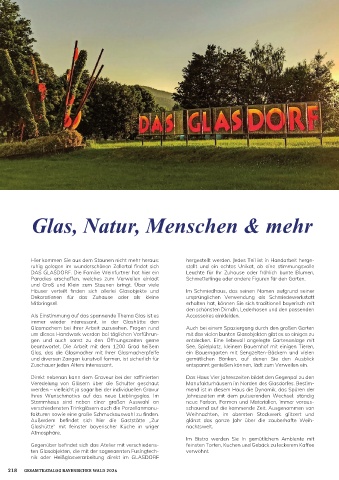 Häuser verteilt finden sich allerlei Glasobjekte und Im Schmiedhaus, das seinen Namen aufgrund seiner einen Ort, der Glas, Natur, Menschen und mehr verbin-