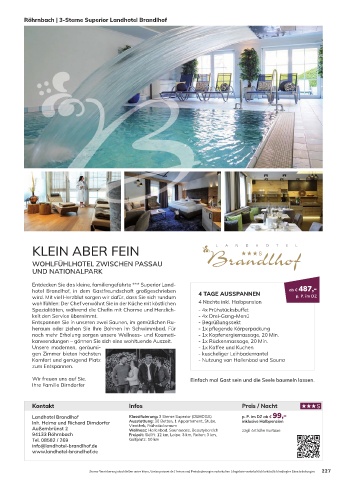 Landhotel Brandlhof Klassifizierung: 3 Sterne Superior (DEHOGA) p. P. im DZ ab € 99,-