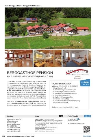 Berggasthof Menauer Klassifizierung: 3 Sterne (DEHOGA) p. P. im DZ ab € 51,-