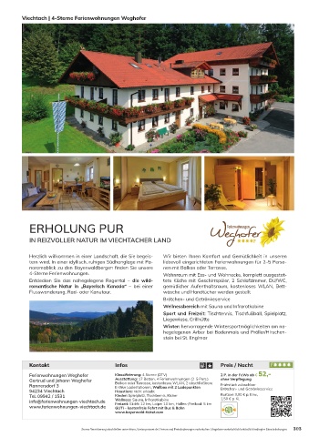 www.ferienwohnungen-viechtach.de Freizeit: Skilift: 12 km, Loipe: 10 km, Hallen-/Freibad: 5 km