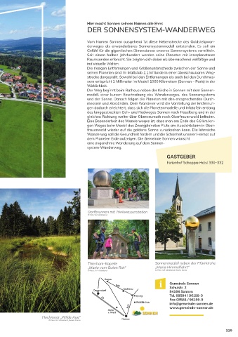 modell, einer kurzen Beschreibung des Wanderweges, des Sonnensystems