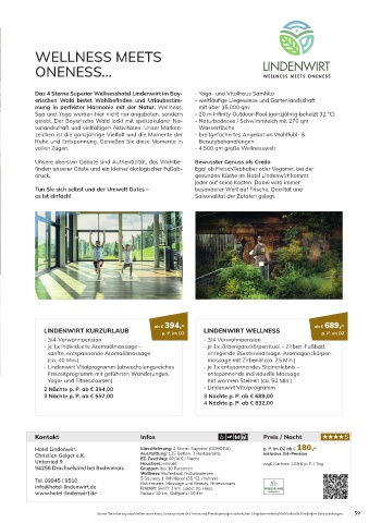 LINDENWIRT KURZURLAUB p. P. im DZ LINDENWIRT WELLNESS p. P. im DZ